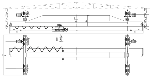 本產(chǎn)品為一般用途起重機(jī),多用于機(jī)械制造裝配、倉庫、山洞等場(chǎng)所。起重機(jī)主要由橋架(金屬結(jié)構(gòu))、電動(dòng)葫蘆、運(yùn)行結(jié)構(gòu)、電氣設(shè)備等四部分組成。